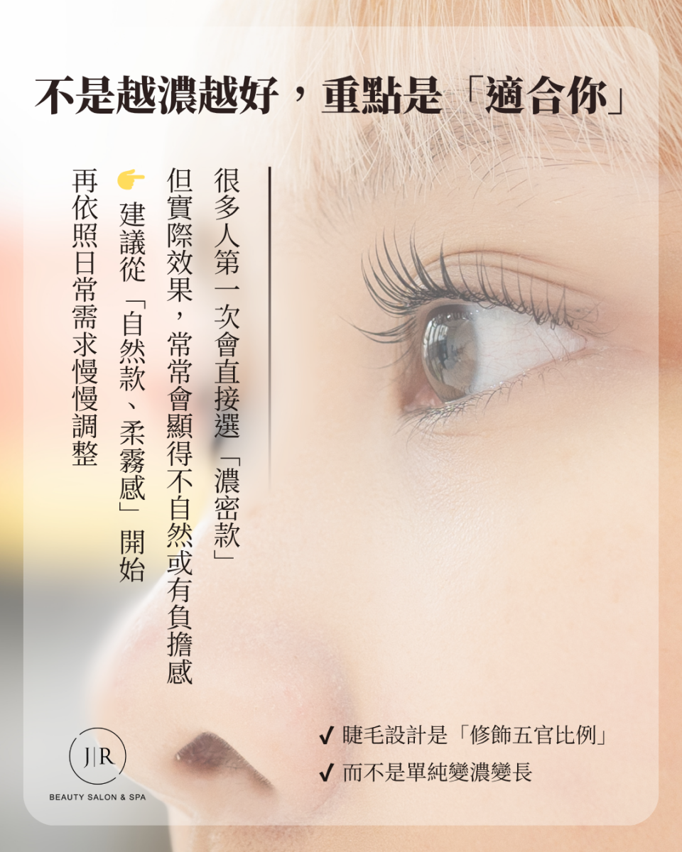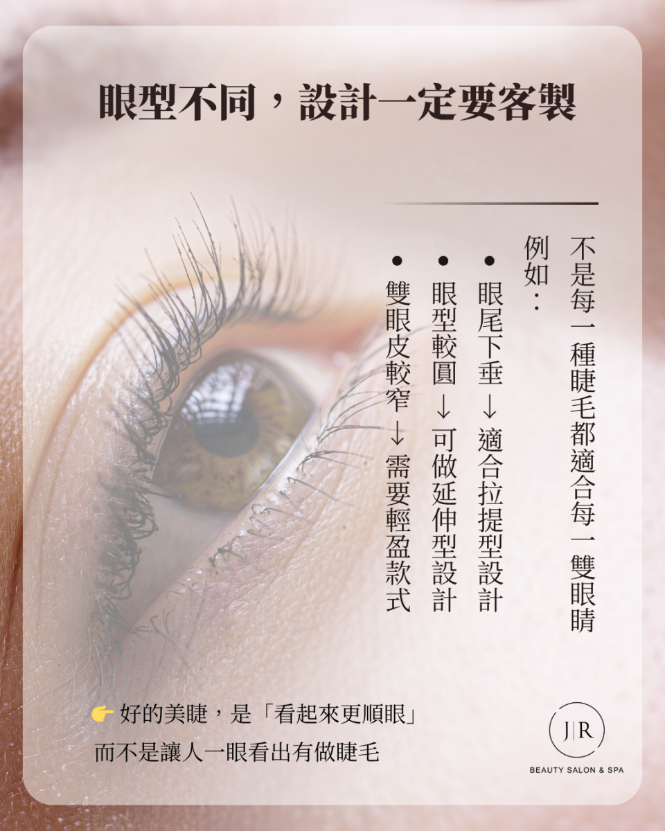 JR美學苑提供客製化美睫設計服務