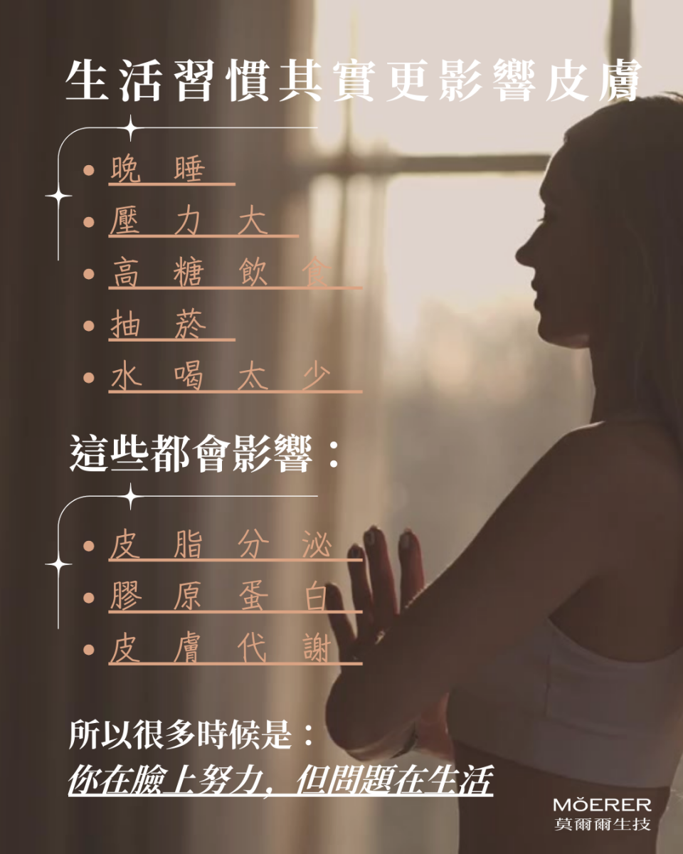 不只是保養品本身,也包含保養方式與生活習慣。